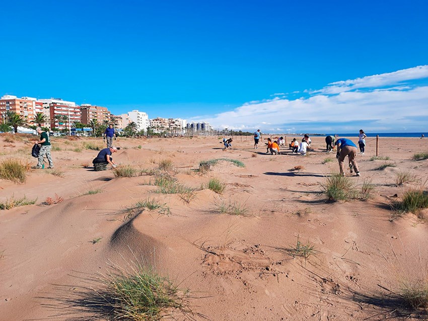 La segunda plantación tuvo lugar el sábado 16 de noviembre en la playa de Almardà. Aquí, la Colla Verda se centró en aumentar y salvaguardar de los temporales y la erosión litoral la biodiversidad asociada a las dunas, plantando gran cantidad de vegetación autóctona. El tercero y último voluntariado se celebró el pasado sábado 21 de diciembre en la playa de Corinto, donde, un año más, se ha hecho crecer el muntanyar (nombre que reciben las dunas en este rincón del litoral valenciano) construido durante los últimos años por los voluntarios y las voluntarias con grabas procedentes de la misma gola.