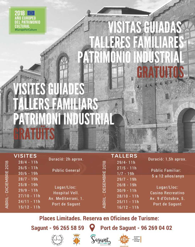 La Delegación de Turismo ha organizado una serie de visitas guiadas y talleres didácticos en colaboración con la Associació de Patrimoni Industrial Valencià (APIVA), que darán a conocer el patrimonio industrial del municipio y tendrán lugar el último fin de semana de cada mes, de abril a diciembre de 2018, con motivo de la incorporación del Patrimonio Industrial de Puerto de Sagunto en la ERIH (European Route of Industrial Heritage), 2018. Las visitas se realizarán los sábados y los talleres los domingos, a las 11 horas, excepto los meses de junio, julio y agosto que se realizarán a las 19 horas. Ambas actividades serán gratuitas y es necesaria la reserva previa en las oficinas de turismo. El objetivo principal es crear vínculos afectivos hacia estas construcciones, con el objeto de desarrollar actitudes de respeto, protección y conservación de nuestro patrimonio industrial.