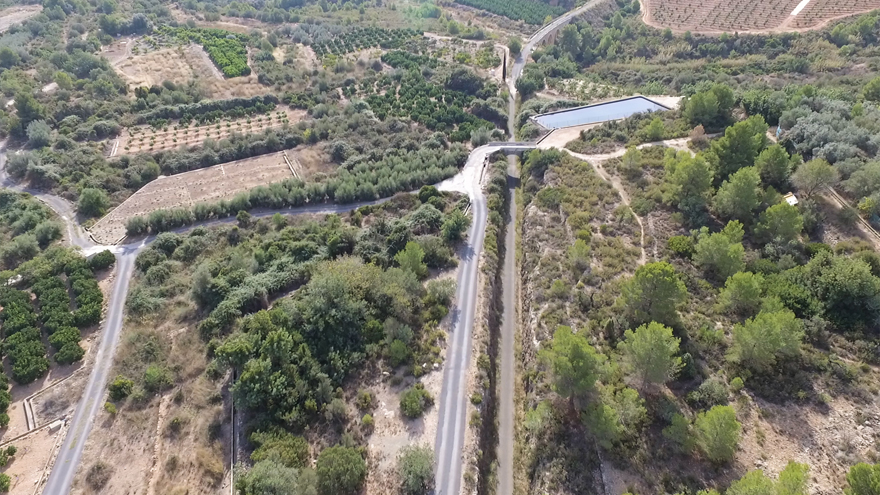 Vista aérea de un tramo de la Vía Verde de Ojos Negros