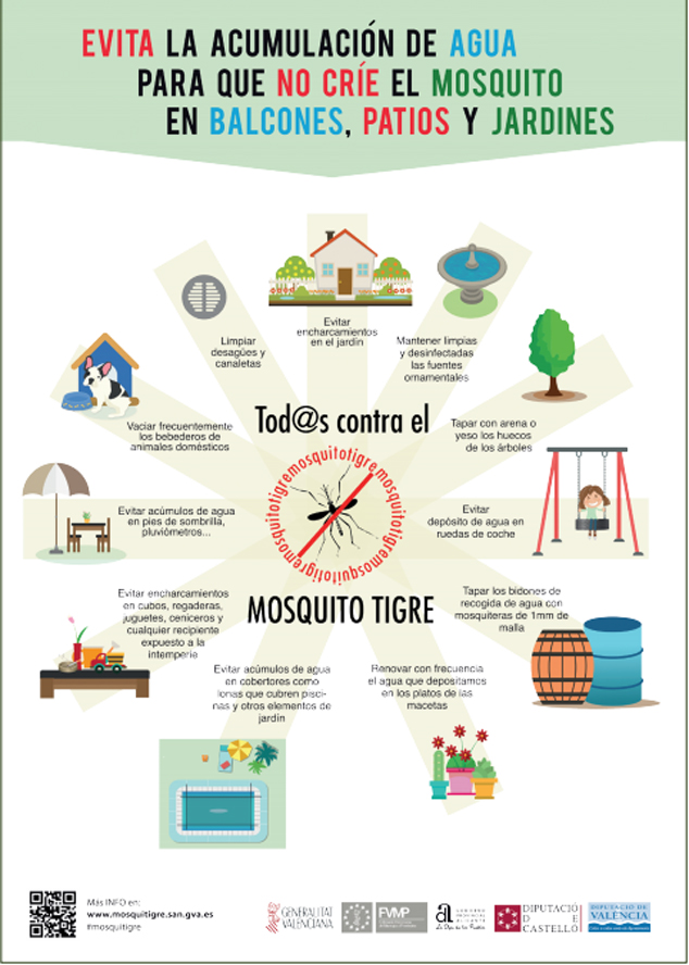 El mosquito tigre constituye una de las sesenta y cinco especies de mosquitos que se encuentran presentes en nuestro país hasta la fecha. Este mosquito tiene un periodo de actividad muy variable según las condiciones climáticas, y en la Comunidad Valenciana cabe esperar su mayor actividad entre mayo y noviembre. Su hábitat más frecuente es el urbano y periurbano, vinculado a la retención de pequeñas cantidades de agua en los espacios domésticos o colindantes.