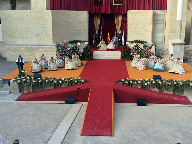 Uno de los actos más intensos para las representantes falleras, es la exaltación en el Teatro Romano de Sagunto, que tuvo lugar el sábado a las 18 horas, en un acto al que también asistió el alcalde de Sagunto; la madrina de la Associazione Targa Cecina, Sara Piangatelli, y miembros de la Corporación Municipal, así como de las fallas del Camp de Morvedre. Las FFMM contaron con un mantenedor de excepción, el periodista local y actual director de comunicación de las Cortes Valencianas, Enric Cuenca Teruel, y estuvieron en todo momento acompañadas por el presidente de la FJFS, Rafa Burgos y el vicepresidente general, Miguel Huguet.