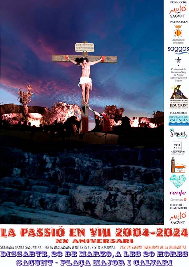 La asociación Passió per Sagunt representará mañana, sábado 22 de marzo, Passió en Viu, una obra de tragedia sacra sobre la pasión de Jesucristo. La obra se interpretará en el casco histórico de Sagunto, a partir de las 20 horas, en la plaza Mayor y el Calvario.