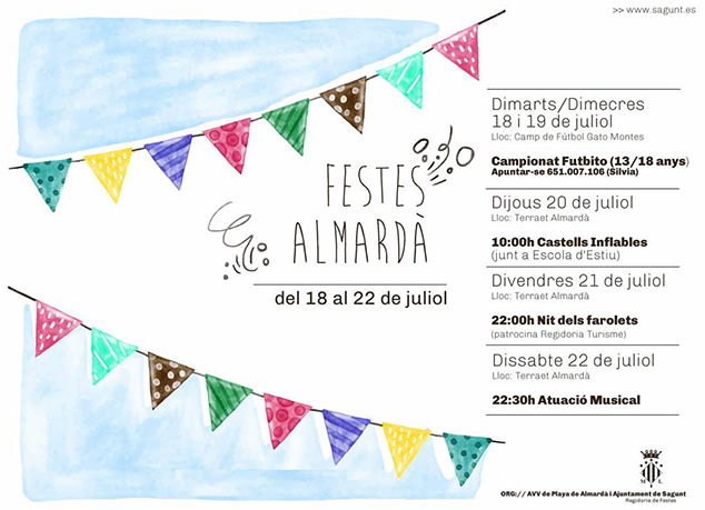 Será en el Terraet de Almardà donde tengan lugar el resto de actividades. Mientras el día 20 a las 10 h habrá castillos hinchables para que los más pequeños puedan disfrutar, el viernes 21 a las 22 h tendrá lugar la nit de farolets. Como cierre a la semana de fiestas, el 22 de julio se organizará una actuación musical a las 22.30 h.