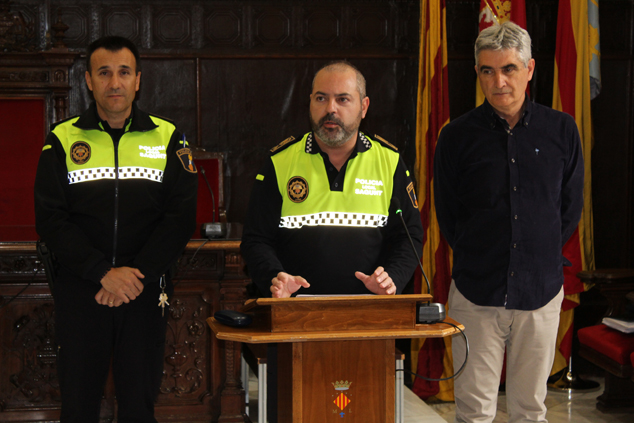 El concejal de Policía Local, Enric Ariño; el intendente general de la Policía Local de Sagunto, Rafael de Manuel, y el inspector de la Policía Local de Sagunto, Antonio Pacheco, han presentado esta mañana la nueva unidad de atestados del cuerpo. La unidad de atestados nace con la intención de centralizar toda la actividad que la Policía Local de Sagunto realice tras un accidente de tráfico. Ariño ha destacado que esta nueva unidad “entra dentro del marco de la reorganización que hemos hecho a partir del incremento de efectivos que hemos tenido” y se busca “cubrir una demanda, sobre todo de los afectados cuando hay accidentes de tráfico”.