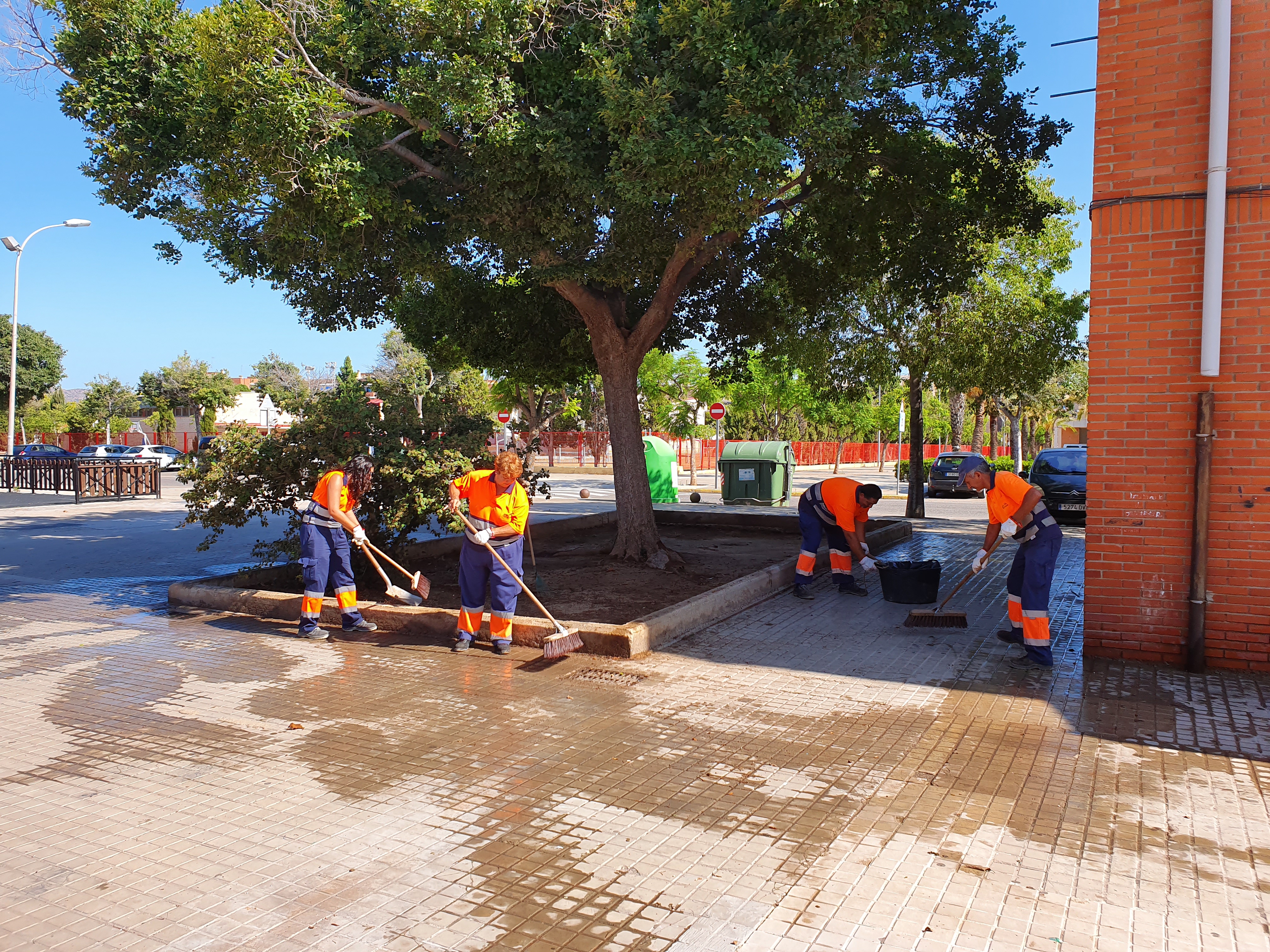 El concejal delegado y vicepresidente de la SAG, Roberto Rovira, el responsable de Relaciones Humanas, José Antonio Fernández y el encargado de Aseo urbano, Rafa garzó han supervisado los trabajos que han consistido en la limpieza integral de todo el barrio, de tal manera que se ha actuado sobre las zonas verdes y de setos, la totalidad de las plazas y zonas abiertas, alcorques, enseres y residuos varios, calles y aceras, principalmente. Desafortunadamente desde la SAG subrayan que ya se han observado, por los mandos intermedios del propio servicio, que zonas que habían quedado impolutas se encuentran ya en un estado inadecuado.