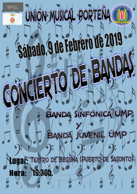 ​Como cada comienzo de año, la Unión Musical Porteña inaugura su temporada de eventos musicales. Así, se celebrará un Concierto de Bandas el próximo sábado, 9 de febrero, a las 19.30 horas en el Teatro de Begoña de Puerto de Sagunto. Una apertura de temporada musical muy interesante que está organizada por la Unión Musical Porteña en colaboración con la delegación de Cultura del Ayuntamiento de Sagunto.