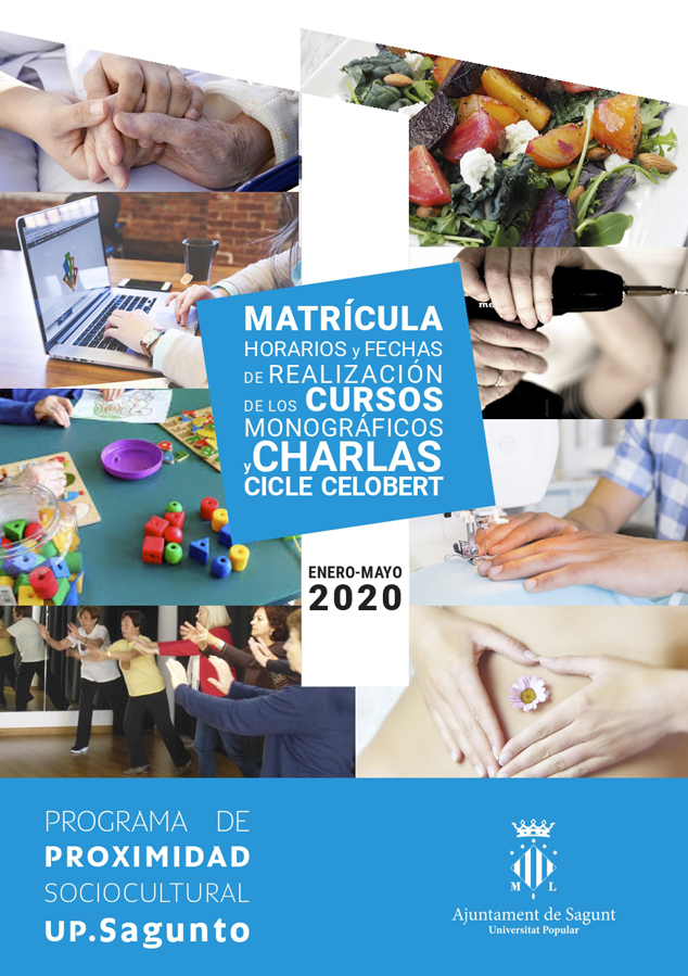 El plazo de inscripción en los cursos estará abierto hasta el 13 de enero de 2020 y se pueden realizar en el departamento de Cultura (C/ Camí Reial, 65), en la Casa Municipal de Cultura (C/ Progreso, 9) o enviando rellenada la ficha de inscripción disponible en la web municipal al correo electrónico inscripcioup@aytosagunto.es.