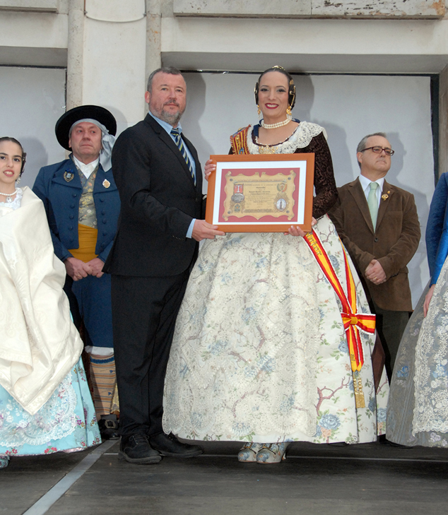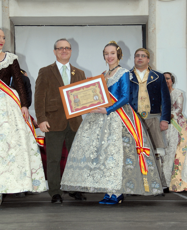 El acto comenzó con la entrega de las máximas recompensas a los más pequeños y mayores con una intensa trayectoria dentro del mundo fallero, tanto las que otorgaba la Federación Junta Fallera de Sagunto como por la Junta Central Fallera de Valencia. Uno de los momentos más emotivos fue la entrega del Masclet d’Or amb Fulles de Llorer, Diamants i Palmes de Platí que este año han sido concedidos a Matilde Iborra, Enrique Noverques y Rosario Gómez, de la falla Teodoro Llorente, Juan Roig de La Palmereta y Salvador Checa de El Palleter.