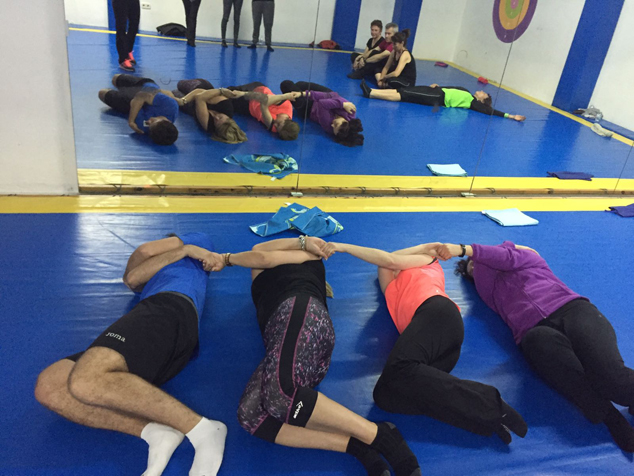 En la Sala Azul, hubo un par de sesiones de Feldenkrais, una fue ‘Sentir el esqueleto’ y la otra sobre ‘Músculos libres’. En la pista polideportiva se realizaron dos sesiones de Fitcross con 20 minutos de estiramientos.