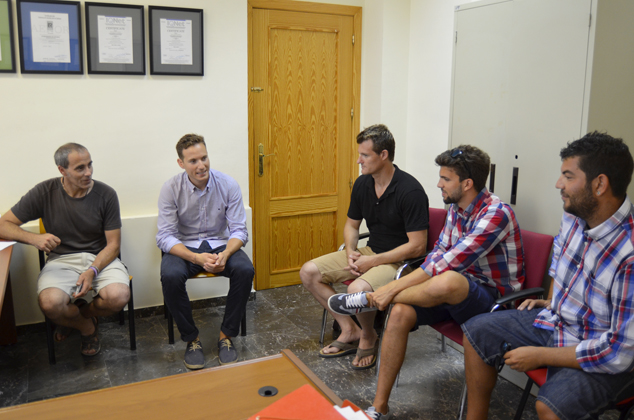 Pablo Abelleira junto al técnico de Playas y los jóvenes emprendedores locales.