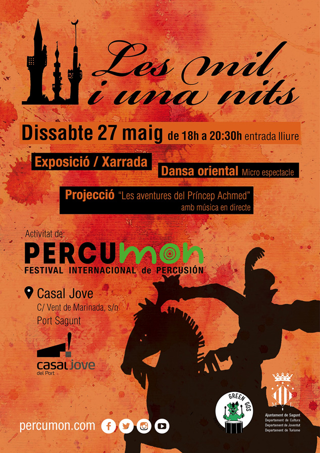 Les mil i una nits, un proyecto didáctico que se enmarca dentro del festival internacional de percusión Percumon. Se trata de una jornada dedicada a los escolares del municipio, que tendrá lugar el próximo sábado 27 de mayo, de 18 a 20.30 horas, en el Casal Jove.