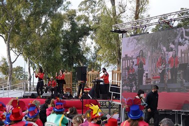 La jornada matinal ha comenzado en el Teatro Romano con una escenificación a cargo de la compañía La Niña de Cristal y ha continuado con el concierto de Pop’s Corn, de la Compañía La Fam, para dar paso finalmente a la recepción real por parte de las autoridades y el selfie real.