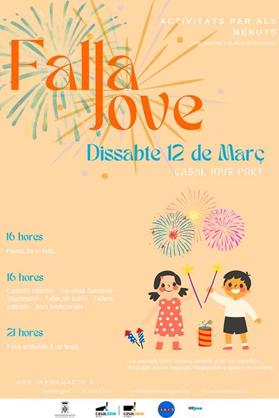 Esta Falla se plantará el próximo sábado, 12 de marzo, en el Casal Jove de Puerto de Sagunto e irá acompañada de muchas actividades a lo largo de la jornada. Las actividades empezarán a las 16 horas para las y los más pequeños con castillos hinchables, xocolatà, discomóvil, taller de cocina y juegos tradicionales infantiles. Esta xocolatà tiene el precio simbólico de 1€ con el objetivo de destinar todo lo recaudado a ayudar al pueblo ucraniano. Acabará la tarde con fuegos artificiales que simularán el fin de fiesta para los pequeños, pero a su vez supondrán el pistoletazo de salida para las actividades de los más mayores.