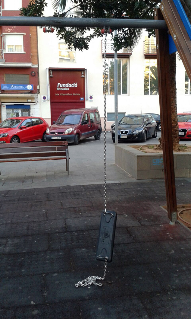 Los columpios de la plaza Xocainet se han cambiado cuatro veces en el último mes