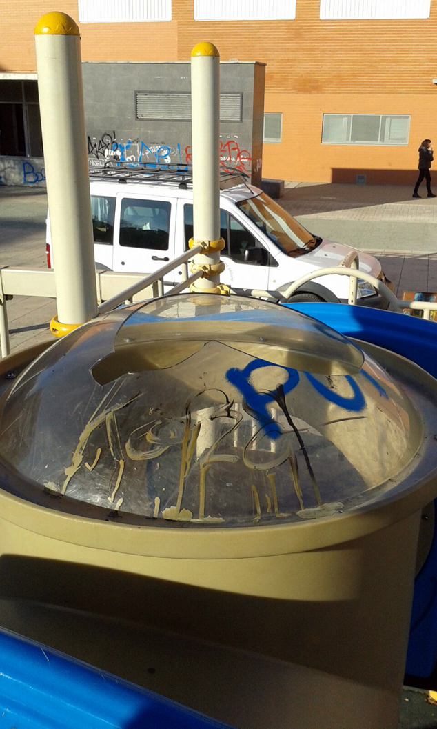 Otras instalaciones de juegos infantiles deterioradas supuestamente por actos vandálicos en las plazas Juan Pablo II, Moreria y Magallanes