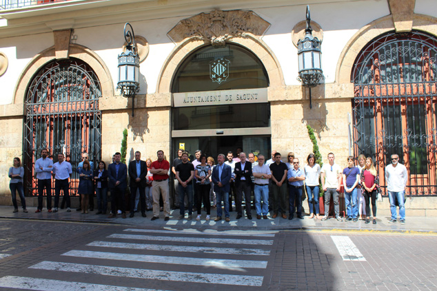 La Corporación Municipal, el funcionariado, así como la ciudadanía, han guardado un minuto de silencio a las puertas del Ayuntamiento de Sagunto y de la Tenencia de Alcaldía de Puerto de Sagunto en señal de repulsa por el presunto atentado terrorista de ayer y de apoyo a las familias.