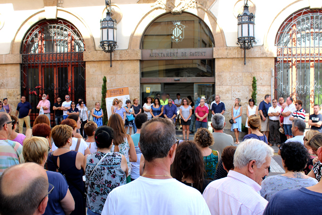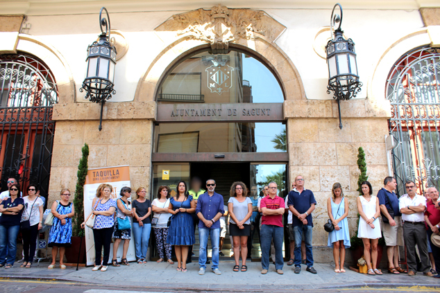 La Corporación Municipal y el funcionariado, así como la ciudadanía de Sagunto, han guardado tres minutos de silencio en las puertas del Ayuntamiento de Sagunto y de la Tenencia de Alcaldía de Puerto de Sagunto en señal de condena y repulsa por el atentado de ayer de Barcelona.