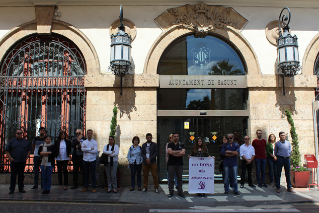 La Corporación Municipal, el funcionariado, así como la ciudadanía, han guardado un minuto de silencio a las puertas del Ayuntamiento de Sagunto, de la Tenencia de Alcaldía de Puerto de Sagunto y del Centro Cívico Antiguo Sanatorio en señal de condena y repulsa por dos nuevos presuntos casos de asesinato machista.