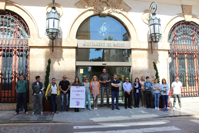 La Corporación Municipal, el funcionariado, así como la ciudadanía, han guardado un minuto de silencio frente a las puertas del Ayuntamiento de Sagunto, de la Tenencia de Alcaldía de Puerto de Sagunto y del Centro Cívico Antiguo Sanatorio en señal de condena y repulsa por un nuevo presunto caso de asesinato machista.