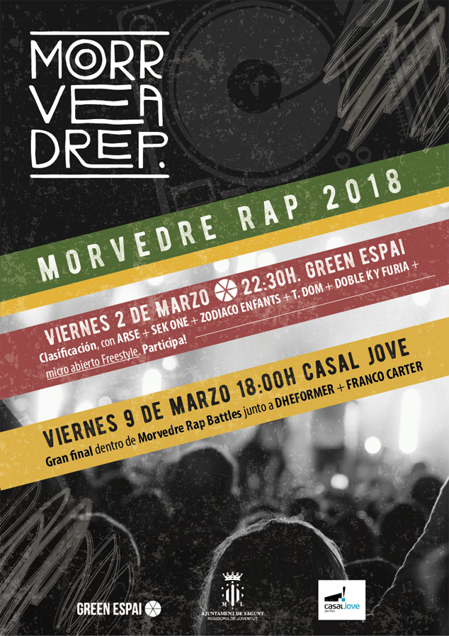 Morvedre Rap es un certamen de la asociación Viure Dignament, que gestiona la sala Green Espai, con la colaboración de la concejalía de Juventud del Ayuntamiento de Sagunto.