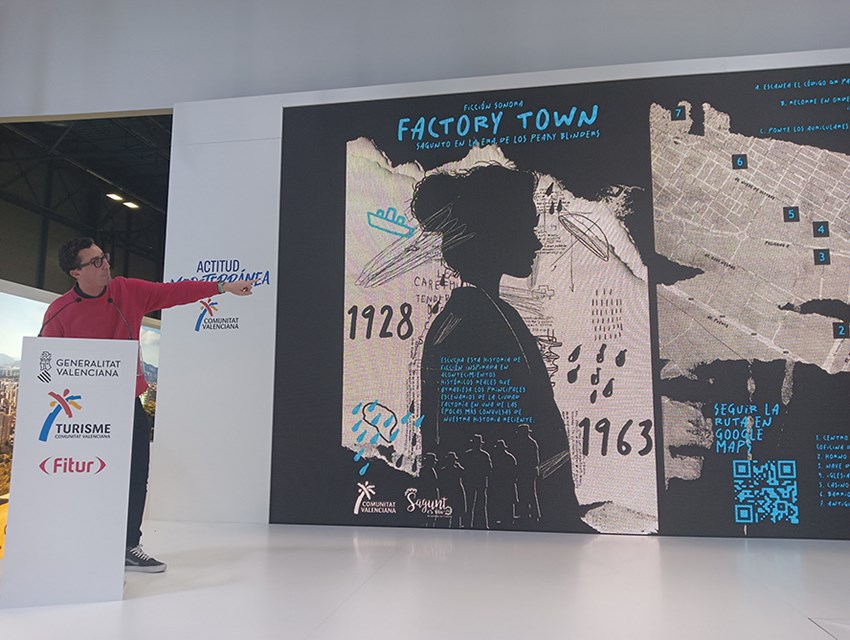 El departamento de Turismo del Ayuntamiento de Sagunto ha presentado hoy en la Feria Internacional de Turismo (FITUR) ‘Factory Town, Sagunto en la era de los Peaky Blinders’, una ficción sonora que se inspira en hechos reales ocurridos en Puerto de Sagunto entre 1928 y 1963.