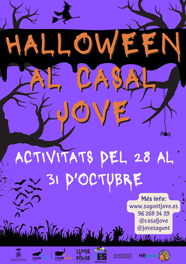 Halloween Jove comenzará el día 28 de octubre en el Casal Jove de Sagunto a las 17:30 horas con la Lluna Plena de Halloween, donde los y las jóvenes de más de 12 años podrán disfrutar de un Halloween alternativo con una tarde llena de talleres y actividades de lo más terroríficas. Habrá taller de cocina, doblaje de películas, concursos y espacios con juegos de mesa y videojuegos. También se realizará un torneo del mítico juego de mesa La fallera Calavera donde, además de eso, habrá concursos con premios toda la tarde.