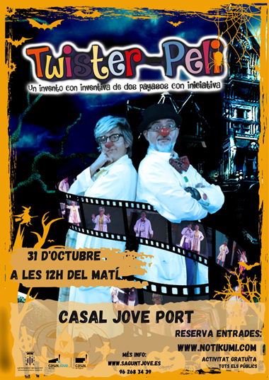 El 31 de octubre el día contará con dos sesiones, por una parte, por la mañana a las 12.00 horas, tendrá lugar una obra de teatro: Twister-peli, que trata sobre películas de terror enrevesadas. También habrá payasos y a las 13:00 horas, los y las menores podrán pintarse la cara con el taller de pintacaras terrorífico.