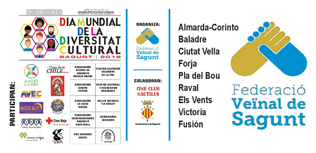 El Ayuntamiento de Sagunto, a través de las delegaciones de Participación Ciudadana, de Juventud y de Cultura, y el Cine Club Nautilus celebrarán la próxima semana el Día Mundial de la Diversidad Cultural, una iniciativa que parte de la Federación Vecinal de Sagunto y en la que participan diferentes colectivos multiculturales del municipio.