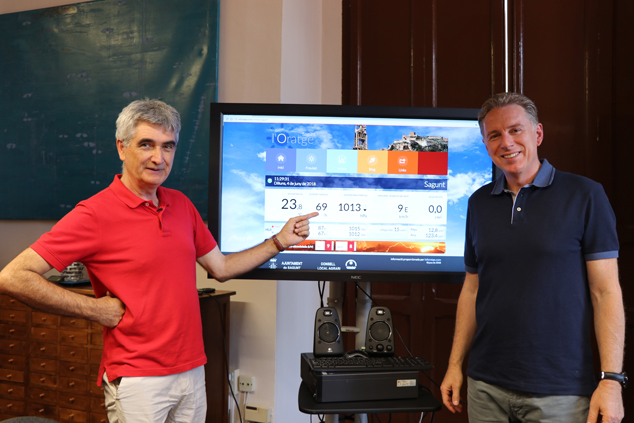 El concejal de Medio Ambiente, Enric Ariño, se ha reunido con el representante de la empresa Inforatge, Rober Esteve, y ha destacado que “la gran ventaja de este servicio es que es personalizado. Los datos que vemos son de una central meteorológica que tenemos en el municipio y, por lo tanto, los datos son de aquí, la temperatura es de aquí, la velocidad del viento también y además tenemos un histórico, que eso ayuda”. El concejal ha asegurado que es un servicio “muy útil, muy interesante y con el que todos estaremos muy satisfechos”.