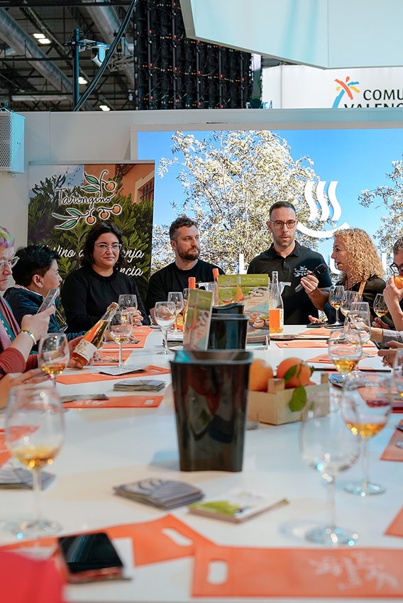 Por otra parte, el público profesional de la Feria ha podido disfrutar de una degustación del vino de naranja de Sagunto, Tarongino, de la empresa local Naranjas Ché, en la zona de l’Exquisit Mediterrani de Turisme Comunitat Valenciana. Durante la cata, los asistentes han podido conocer la ciudad de mano de la concejala de Turismo, Natalia Antonino. Los empresarios Jaime Fernández y Guillermo Antelo han dado a conocer las diferentes variedades de naranjas que producen de manera sostenible y ecológica. Las personas asistentes se han deleitado con la cata, además degustando tres variedades del vino de naranja, el de pomelo y el espumoso, conociendo así como se produce este producto, mediante la fermentación de la naranja, así como su última novedad: un cóctel.