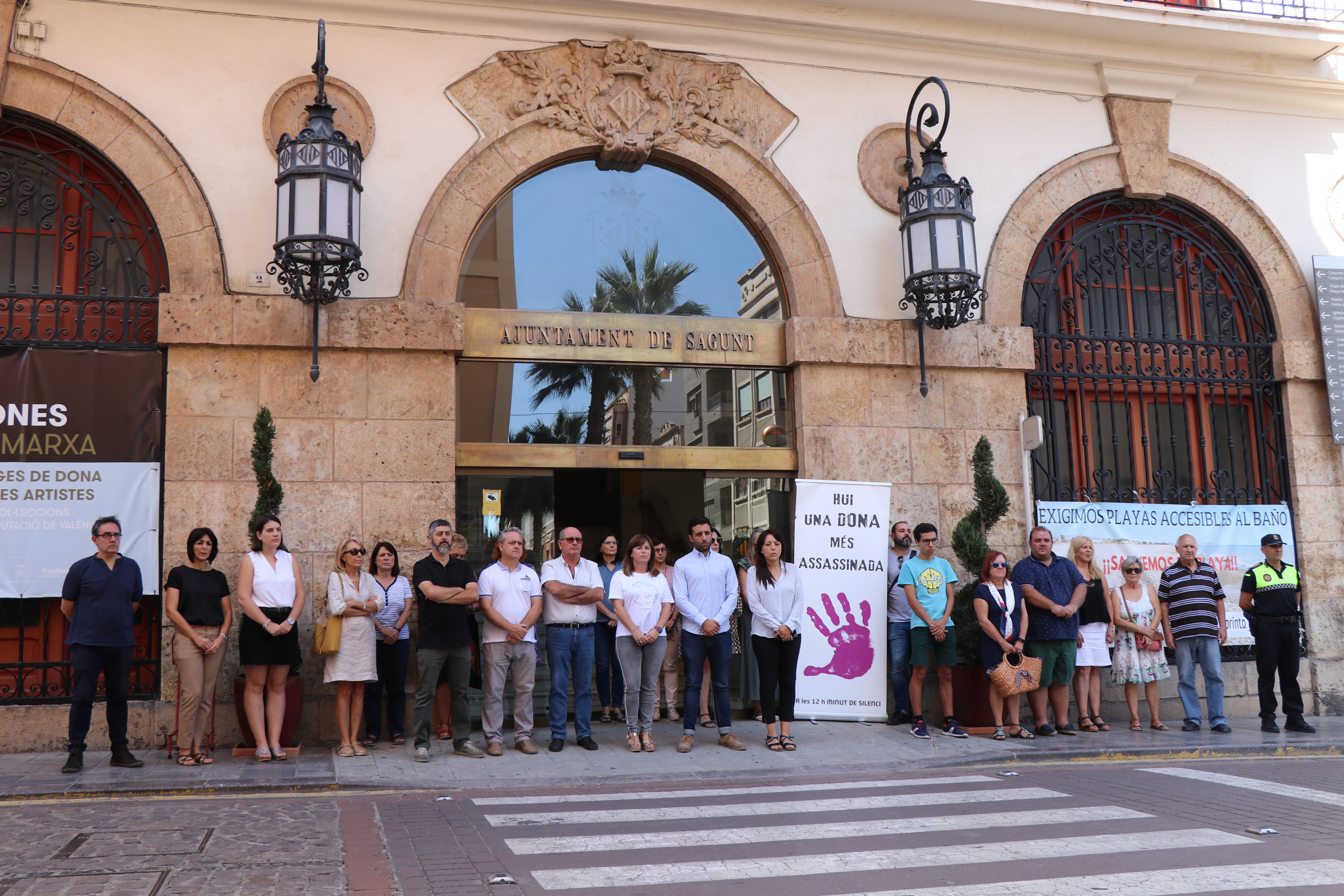 Miembros de la Corporación Municipal, del funcionariado y de la ciudadanía han condenado y mostrado su repulsa a estos hechos a las puertas de los edificios municipales.