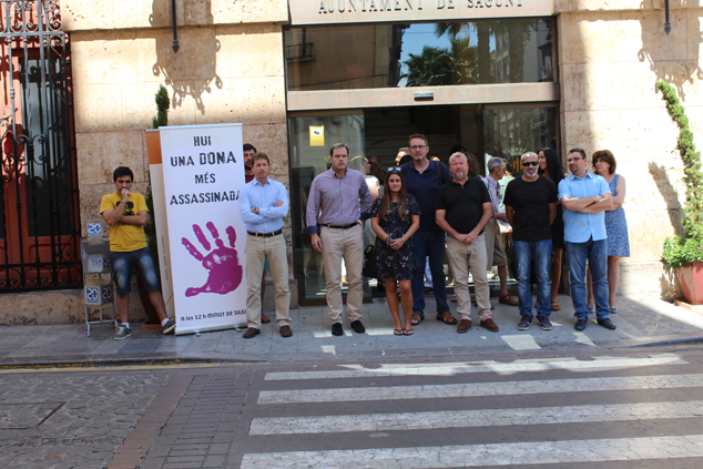 La Corporación Municipal, el funcionariado y la ciudadanía han guardado un minuto de silencio a las puertas del Ayuntamiento de Sagunto, de la Tenencia de Alcaldía de Puerto de Sagunto y del Centro Cívico Antiguo Sanatorio en señal de condena y repulsa por un nuevo presunto caso de violencia machista ocurrido en Valencia.