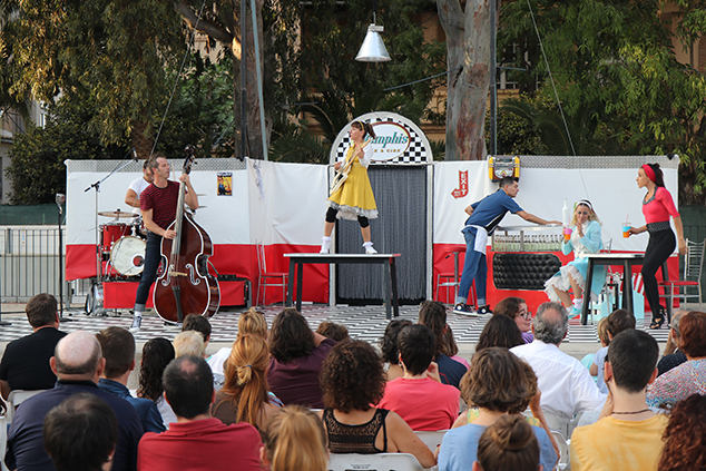 Ayer, jueves 26 de julio, se inauguró la 36ª edición del festival Sagunt a Escena con el espectáculo ‘Memphis rock & circo’ la actuación en la Glorieta de la compañía La Finestra Nou Circ. Es un espectáculo que propone un viaje al Memphis, mítico bar de ‘rock’ de los 50 donde un camarero y músico carismático recibe cada noche un peculiar grupo de amigos. Música en directo, malabares, acrobacias y humor en una frenética y divertida historia de encuentros y desacuerdos al ritmo de ‘rock & roll’.