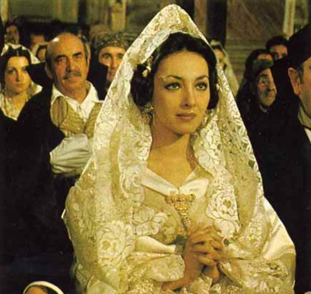 La actriz italiana Rosaria Omaggio en el papel de Visanteta en la película "El virgo de Visantenta"