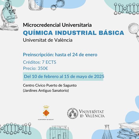 El Ayuntamiento de Sagunto, en colaboración con la Universidad de Valencia a través de su vicerrectorado de Formación Permanente, Transformación Docente y Empleo, ha anunciado el lanzamiento de la segunda edición de la Microcredencial en Química Industrial Básica. Este es un programa formativo diseñado para dotar a los estudiantes de los conocimientos esenciales en química industrial y capacitarlos para una inserción laboral exitosa en el sector. Este curso, que forma parte de las iniciativas de formación continua de la Universidad de Valencia, responde a la creciente necesidad de profesionales cualificados en un ámbito clave para el desarrollo económico del territorio.