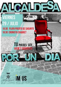 El Proyecto de Mapeos Urbanos (MUS) realizará mañana viernes 29 de julio una nueva actuación que consistirá en llevar un sillón bermellón del Salón de Plenos al Paseo Marítimo y a la Glorieta para que los ciudadanos se sientan “AlcaldeSA” por un día.
