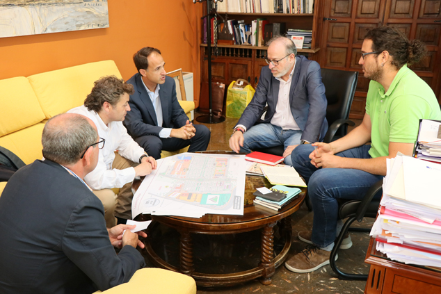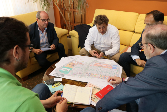 El Ayuntamiento de Sagunto ha recibido esta mañana la visita de responsables para la próxima ubicación de una nueva empresa en VidaNova Parc. Para ello, han asistido a la reunión el concejal de Actividades, Guillermo Sampedro; el concejal de Promoción Económica, Miguel Chover, el concejal de Mantenimiento, Pepe Gil; el responsable de Expansión de Worten, Vicente Tomás; y el director de Desarrollo del Grupo Lar, José Antonio García.