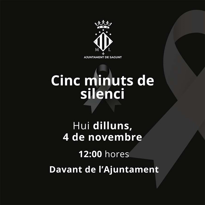 Sagunt ha atés així la convocatòria de la Federació Valenciana de Municipis i Províncies (FVMP) en solidaritat amb els centenars de famílies que han perdut a éssers estimats o que continuen buscant-los, així com les nombroses persones afectades.