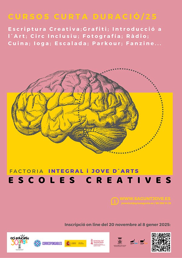 El programa Escoles Creatives de la regidoria de Joventut i Infància continua amb la seua activitat per al curs 2024-2025. Per a inscriure's en les noves activitats, les persones interessades poden fer-ho fins al dimecres 8 de gener a través d'Internet: https://aytosagunto.apuntate.online/pio/actividades.xhtml