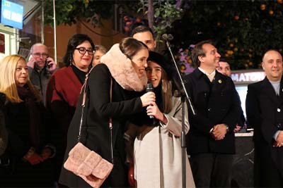 Les falleres majors han sigut les encarregades de dur el compte enrere per a l'encesa. A més, s'ha comptat amb la participació de la Unión Musical Porteña, la coral d'esta societat musical, així com amb un cor de xiquets i xiquetes del col·legi Sant Vicente Ferrer de Sagunt, que han interpretat un variat repertori de nadales i música popular.