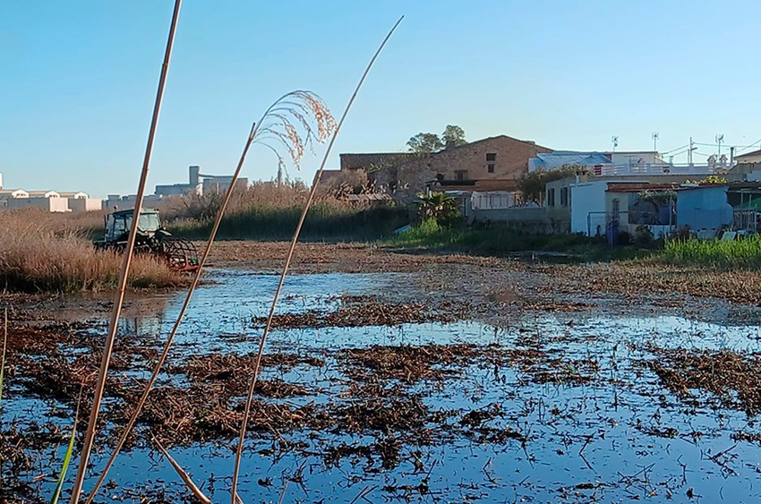 S'ha procedit a la neteja, el desbrossament i el fangueig del canyissar pròxim al Grau Vell