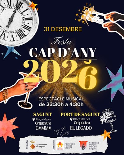 D'una banda, la Regidoria de Festes i Cultura Popular ha presentat la potent programació municipal per a la Nit de Cap d'Any. Com és habitual en els últims anys, esta activitat compta amb la col·laboració de les federacions de penyes del municipi, l'Associació Cultural Penyes de Festes Patronals de Sagunt i de la Federación de Peñas de Puerto de Sagunto, i s'han programat activitats tant en el nucli de Sagunt com en el del Port de Sagunt.