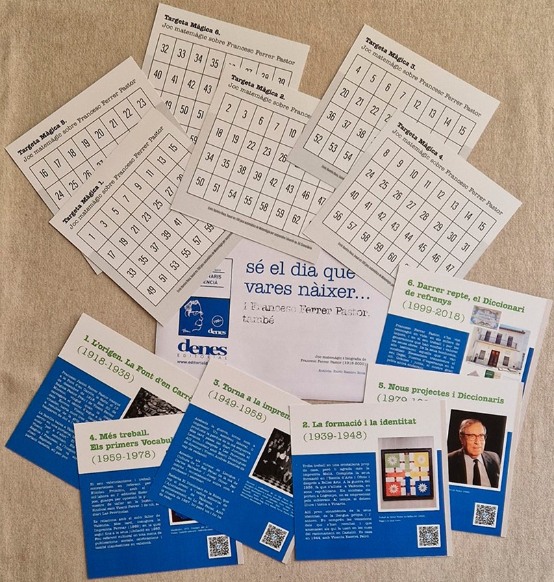Els materials han sigut editats per Denes Editorial i també es poden sol·licitar per escrit els exemplars que es necessiten a denes@editorialdenes.com fins a esgotar existències, i s'enviaran de manera gratuïta. El material està dirigit a escoles, instituts, universitats, entitats socials i culturals i particulars. Estos recursos pretenen donar a conéixer la vida i l'obra de Francesc Ferrer Pastor i, alhora, oferir un instrument on es troben les lletres i la ciència a través de l'originalitat de la “matemàgia”.