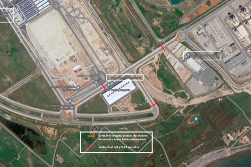 A fi de poder resoldre els servicis afectats en la zona i executar el viaducte que contempla el projecte sobre l'H-8 i el rebaixe d'este mateix vial, es preveu el tall del carrer des del pròxim dia 20 de febrer de 2023. El tall es produirà des de les rotondes que es troben en tots dos extrems de la zona afectada, permetent únicament l'accés als recintes de la dessaladora d'Acuamed pel nord i de la nau d'Aspes electrodomèstics pel sud.