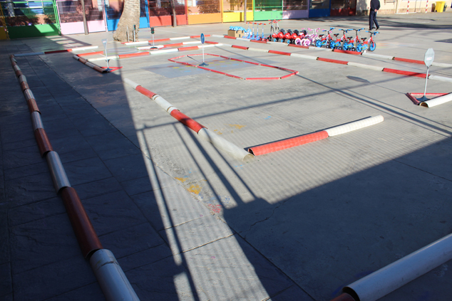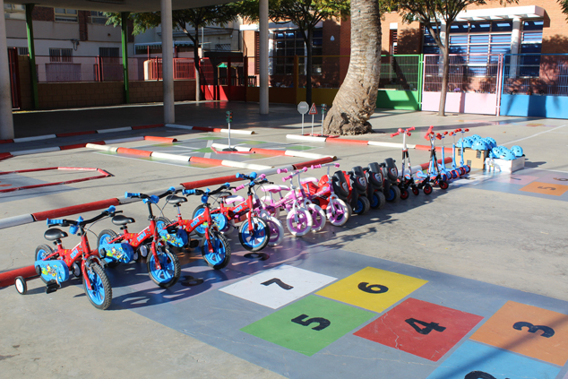 L'aportació consistix en 4 bicicletes amb rodes de suport, 4 bicicletes sense pedals, 4 patinets de dos rodes, 4 patinets de tres rodes, 4 motos-passejadors, 10 cascos de seguretat, senyals de trànsit i material didàctic. Amb este material es realitzaran les pràctiques de forma homogènia i segura en les visites que es realitzen als centres escolars, on s'instal·la un parc mòbil infantil de trànsit senyalitzat perquè els menors puguen iniciar-se en el trànsit rodat com a conductors (ciclistes, patinadors i motoristes) i vianants.