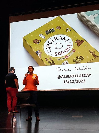 Ha estat una interessant exposició del procés per idear un joc de taula. En concret, Capgirant Sagunt té com objectiu millorar el coneixement del nostre poble, les seues tradicions, la seua historia, cultura monuments i persones que fan de Sagunt un indret únic i especial, i ho fa d’una forma lúdica i oberta que permet noves propostes, en sintonia amb la, cada cop més imprescindible i valorada, necessitat d’imaginar i crear.