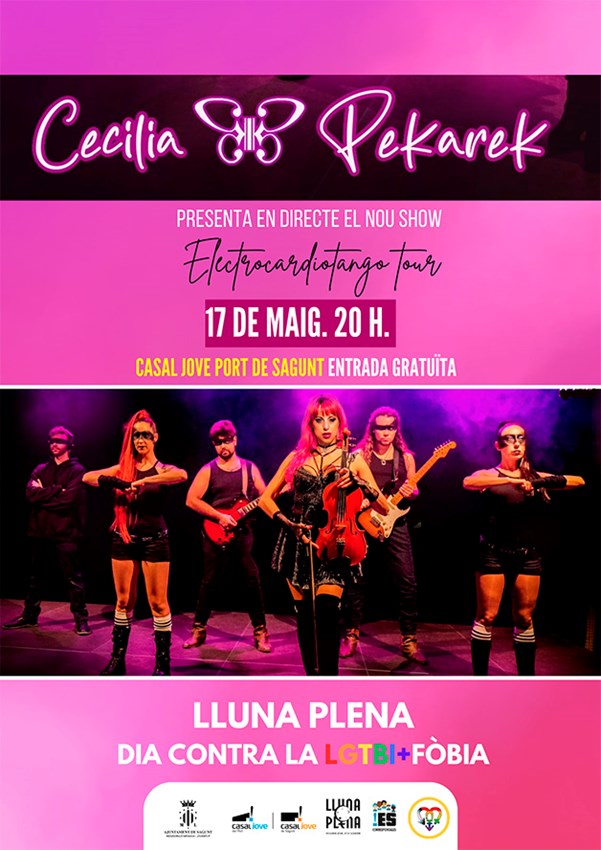 Hui, a les 20 hores, la violista argentina resident a la nostra ciutat Cecilia Pekarek presenta el seu nou espectacle i disc Electrocardiotango al Casal Jove del Port de Sagunt. En l'espectacle, que es podrà presenciar gratuïtament, es combina música amb dansa i compta, entre altres, amb col·laboracions de components del jove grup local Bendita Locura i ballarines de la nostra ciutat. L'actuació s'emmarca en les activitats d'Oci Alternatiu Lluna Plena, que en esta ocasió té com a temàtica central el dia contra la LGTBI+fòbia.