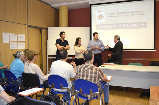 Hui comença la segona part del curs “Facturació electrònica” que ha organitzat la delegació de Comerç de l'Ajuntament de Sagunt, a través de l'Agència per al Foment d'Iniciatives Comercials (AFIC) per als comerciants del municipi. El curs, que va començar el passat 27 d'abril amb una primera part dirigida a persones que necessitaven adquirir coneixements bàsics sobre ofimàtica, és una de les accions formatives que porta realitzant l'Equip de Govern per a la modernització del sector comercial.