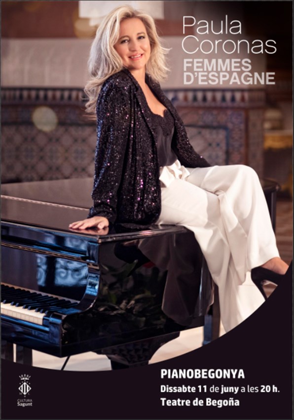 La pianista malaguenya Paula Coronas arriba al Teatre de Begoña del Port de Sagunt (carrer Progrés, 32) amb el seu nou treball, Femmes d'Espagne. El recital, que durarà aproximadament una hora i quart, tindrà lloc este dissabte, 11 de juny, a les 20.00 hores i l'entrada serà gratuïta. La seua actuació s'emmarca dins del cicle PianoBegoña i forma part de la programació trimestral promoguda per la delegació de Cultura de l'Ajuntament de Sagunt.