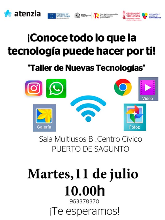 El dimarts 11 de juliol, al Centre Cívic del Port de Sagunt a les 10 hores, s'impartirà el curs "Conoce lo que la tecnología puede hacer por ti". Està organitzat per Atenzia i compta amb la col·laboració de l'Àrea del Major del departament de Serveis Socials de l'Ajuntament de Sagunt. És un curs enfocat a les persones majors del municipi.